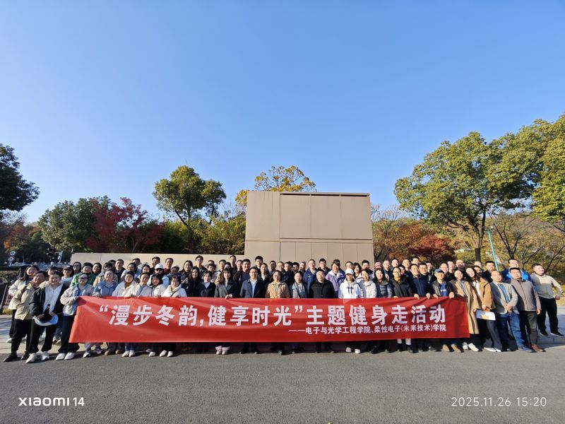 為迎接學(xué)院黨代會(huì)勝利召開,讓全體教職工在自然中放松身心、在運(yùn)動(dòng)中凝聚力量,11月26日下午,電子與光學(xué)工程學(xué)院、柔性電子(未來技術(shù))學(xué)院工會(huì)精心策劃“漫步冬韻,健享時(shí)光”主題健身走活動(dòng),組織全院教師走進(jìn)羊山公園,共赴一場(chǎng)冬日美景與健康活力的雙向之約。下午三點(diǎn),參與活動(dòng)的教師們齊聚公園入口廣場(chǎng),臉上洋溢著期待與喜悅。學(xué)院黨委書記黃麗亞致辭,她表示,此次健身走活動(dòng)既是響應(yīng)“全民健身”號(hào)召、關(guān)愛教職工身心健康的暖心舉措,也是學(xué)院以團(tuán)結(jié)奮進(jìn)風(fēng)貌迎接黨代會(huì)的生動(dòng)實(shí)踐。“希望大家在漫步中欣賞冬景、在同行中增進(jìn)情誼,把運(yùn)動(dòng)帶來的活力與激情,轉(zhuǎn)化為教書育人、干事創(chuàng)業(yè)的強(qiáng)大動(dòng)力,共同為學(xué)院高質(zhì)量發(fā)展蓄力賦能。”致辭結(jié)束后,教師們邁著矯健的步伐有序啟程,沿著蜿蜒的環(huán)湖步道展開了一場(chǎng)與冬日的親密邂逅。活動(dòng)結(jié)束后,教師們?cè)诠珗@入口處集體合影。此次健身走活動(dòng)全程約5公里,路程雖不算長(zhǎng),卻讓老師們?cè)诜泵Φ墓ぷ髦啵叱隽诵@、走進(jìn)了自然,既鍛煉了身體、舒緩了壓力,更增進(jìn)了彼此間的溝通與情誼。電子與光學(xué)工程學(xué)院、柔性電子(未來技術(shù))學(xué)院工會(huì)未來將繼續(xù)聚焦教職工需求,秉持“服務(wù)教職工、凝聚向心力”的宗旨,組織更多形式
